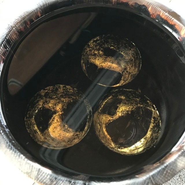 ガラスの上についている漆を剥がすため、しばらく水に浸けておきます。