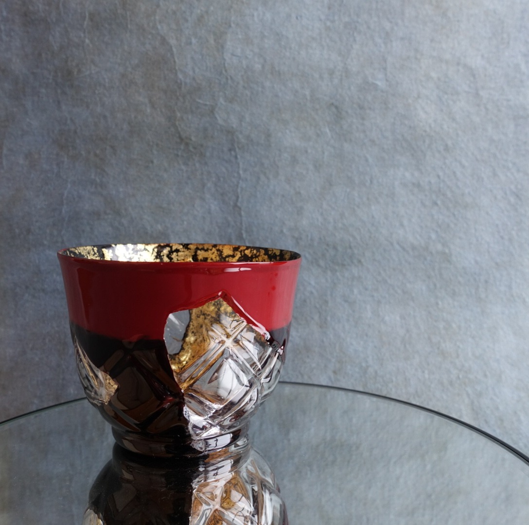 〜ガラス欠片を漆で呼び継ぎした酒器〜