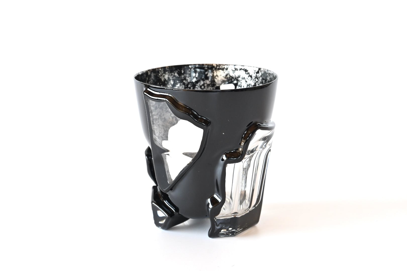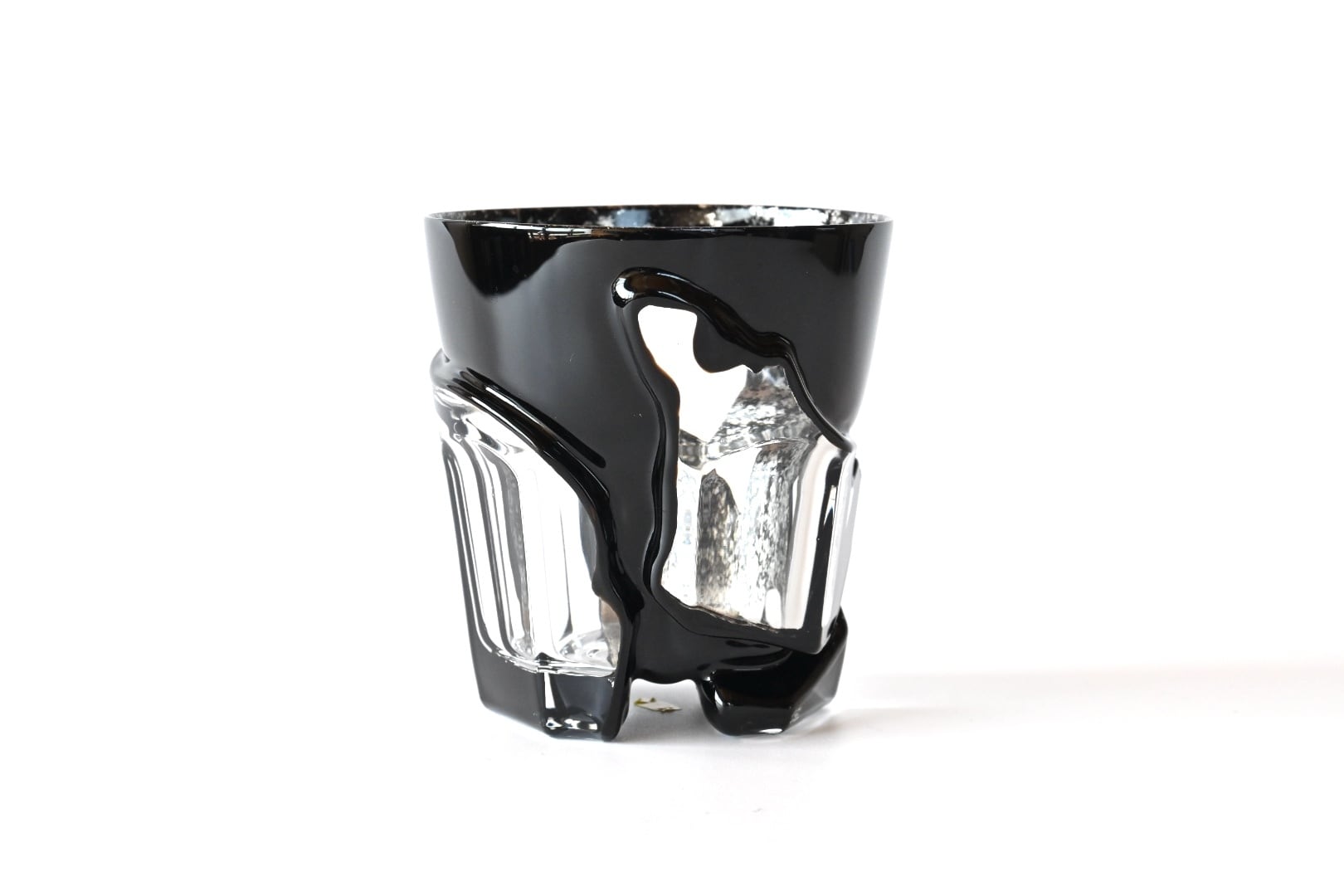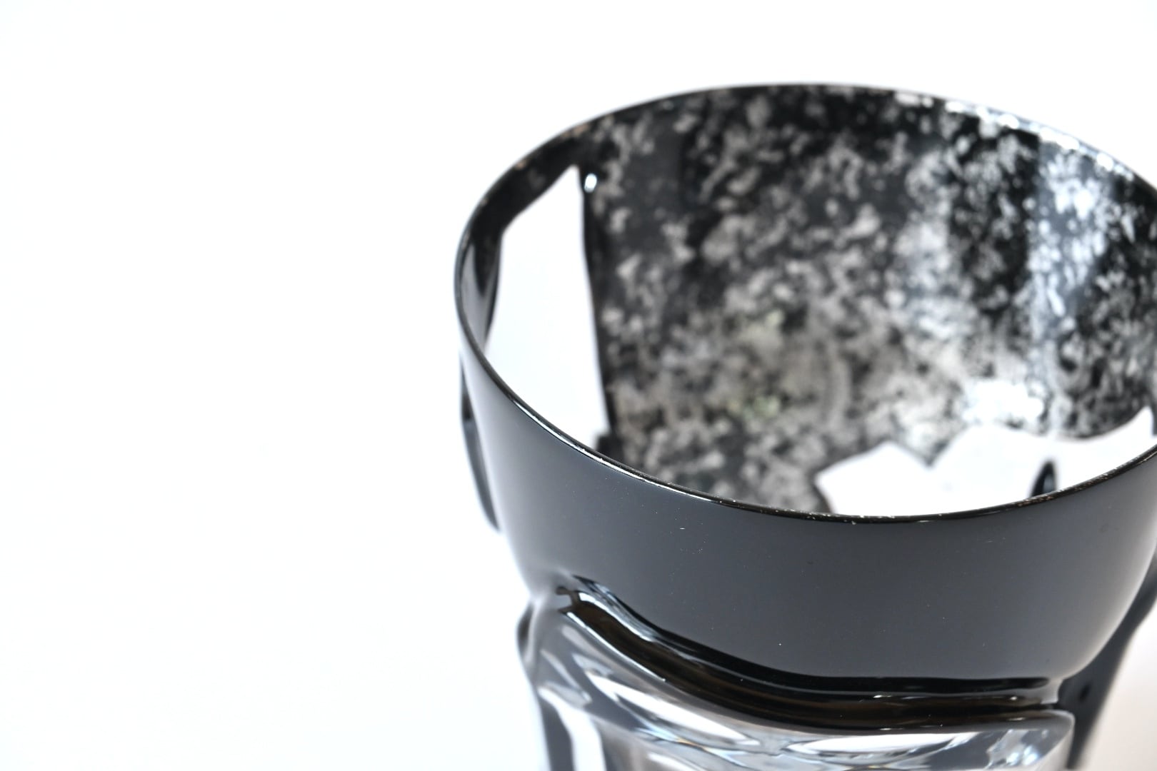 【漆とガラスの芸術酒器】薄さ1mm、漆のみでつくられた飲み口 [タンブラー / 黒銀 |包 -TsuTsuMu-]