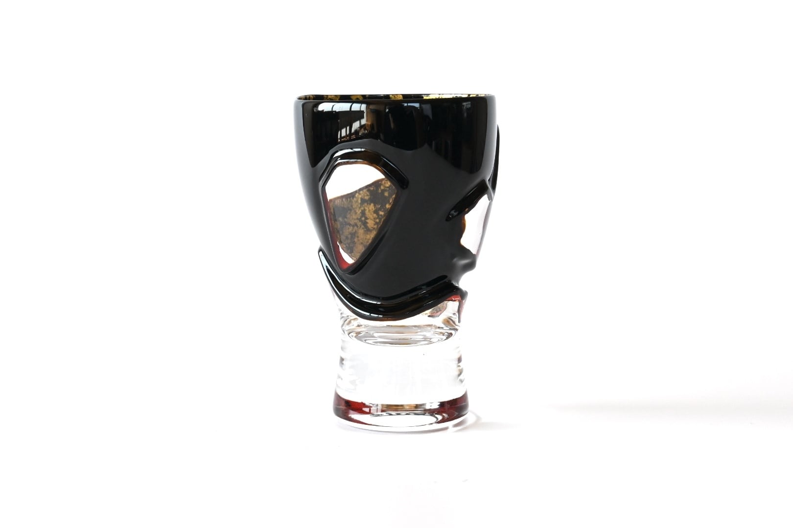 【漆とガラスの芸術酒器】薄さ1mm、漆のみでつくられた飲み口 [ショットグラス / 緋入り |包 -TsuTsuMu-]