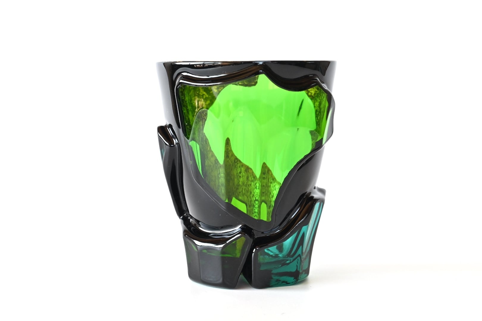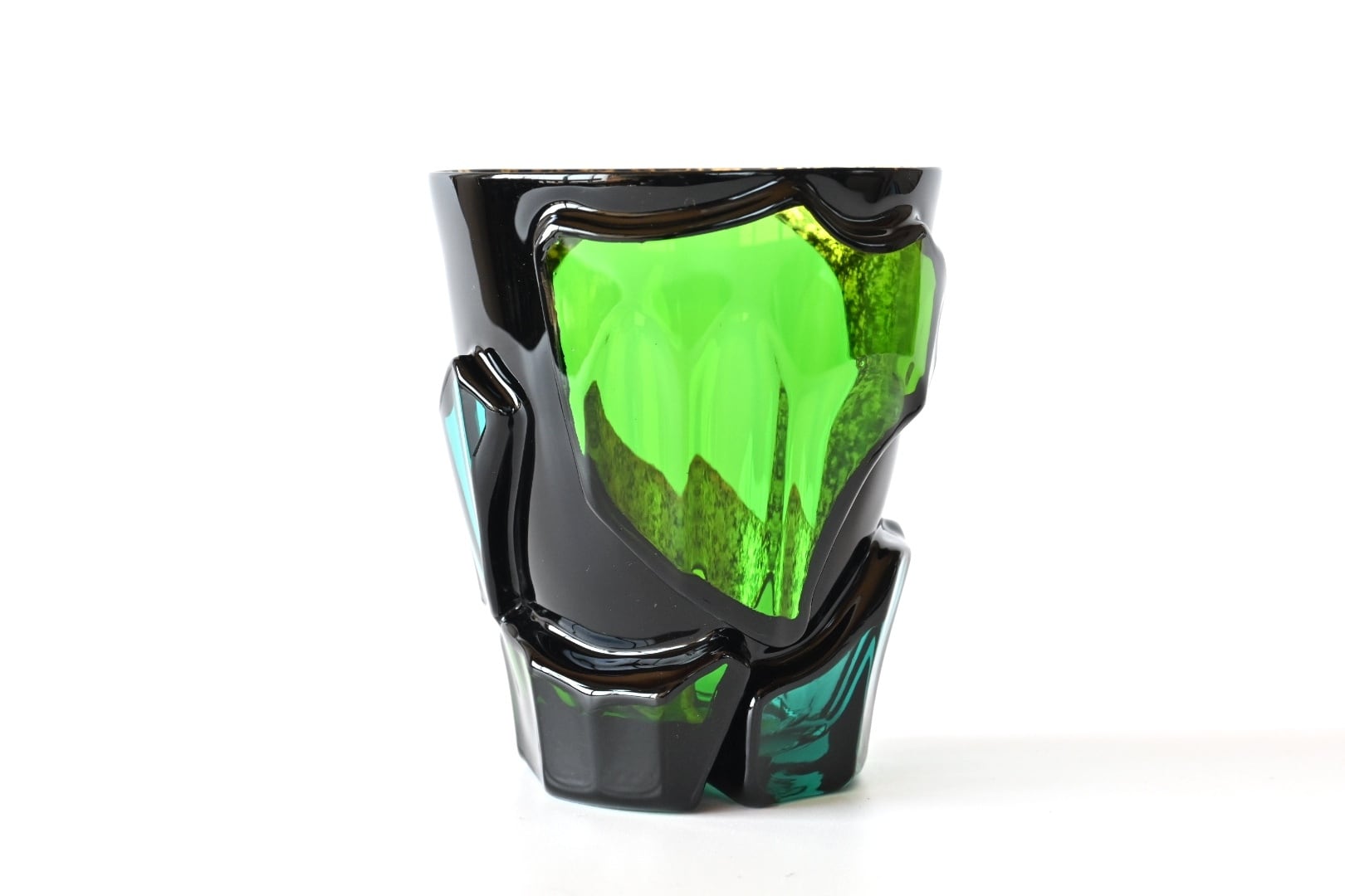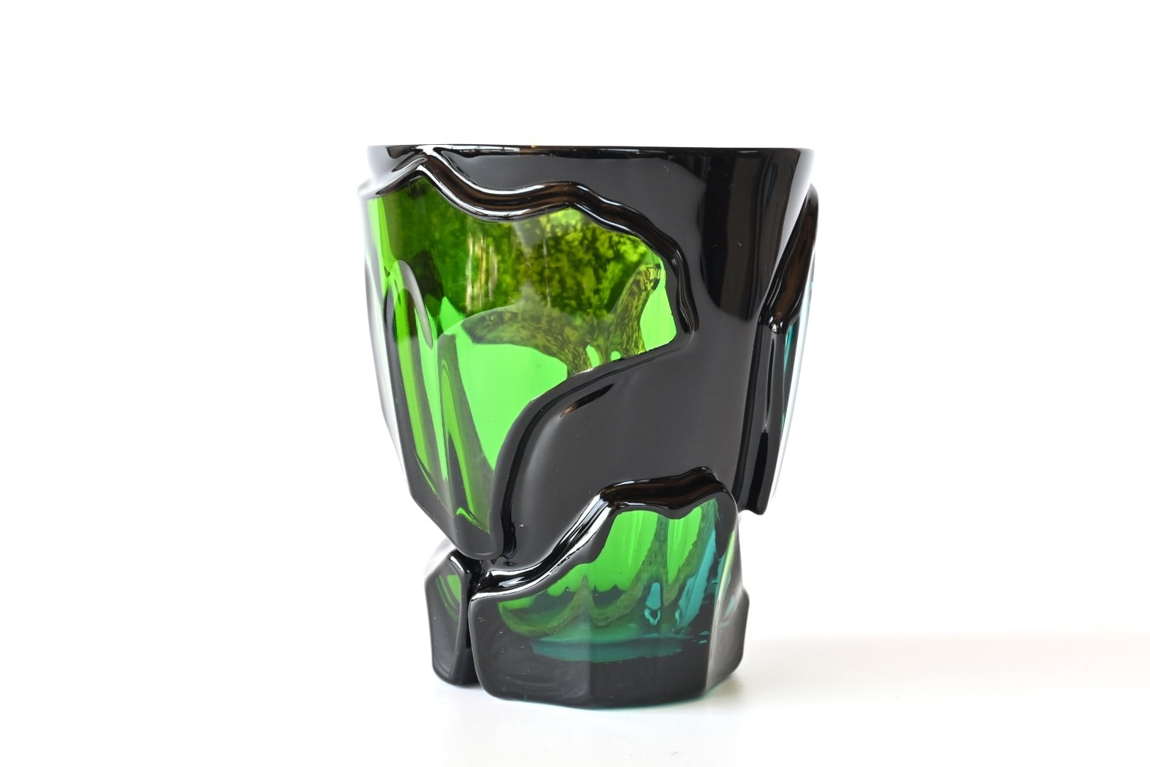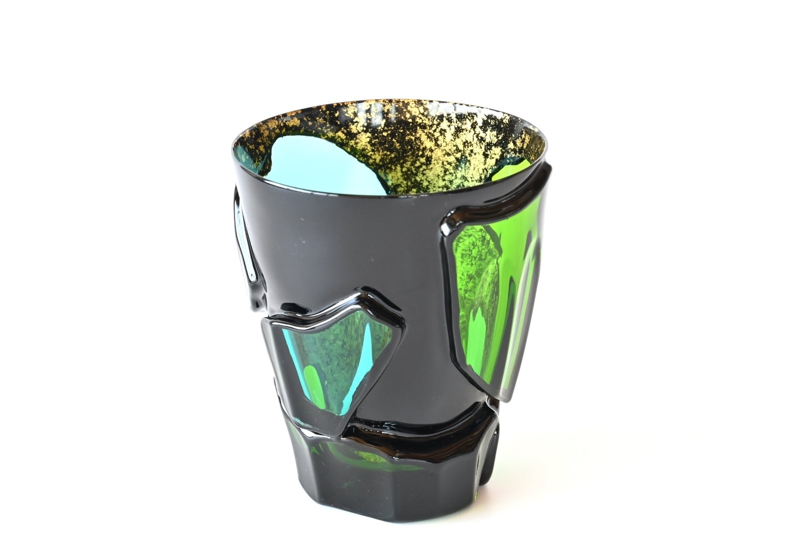 【漆とガラスの芸術酒器】薄さ1mm、漆のみでつくられた飲み口 《 包 -TsuTsuMu- 映[Ei] (色ガラス) × グリーン&ターコイズ 》