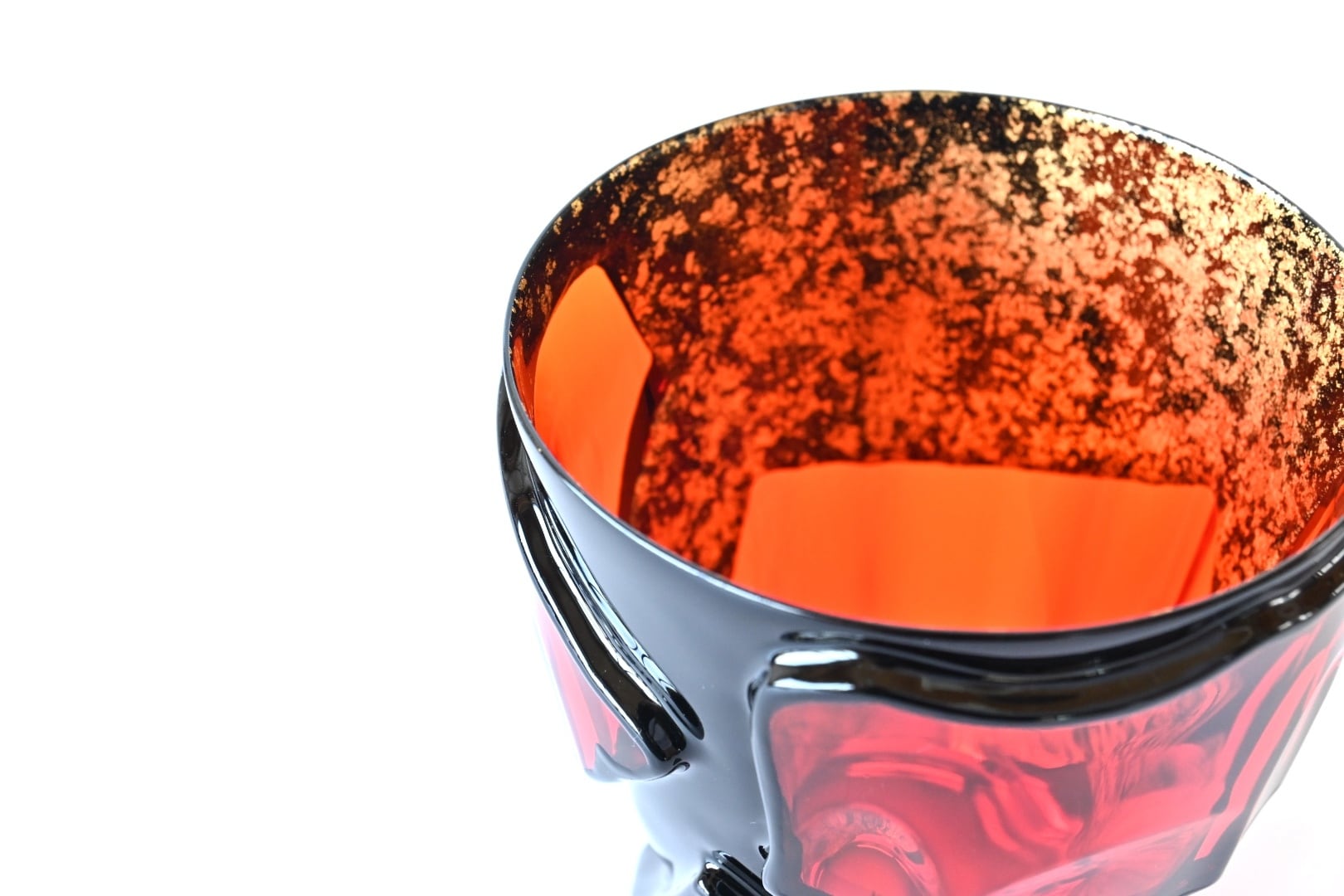 【漆とガラスの芸術酒器】薄さ1mm、漆のみでつくられた飲み口 《 包 -TsuTsuMu- 映[Ei] (色ガラス) × レッド 》
