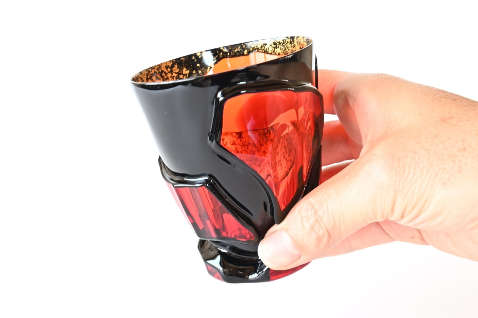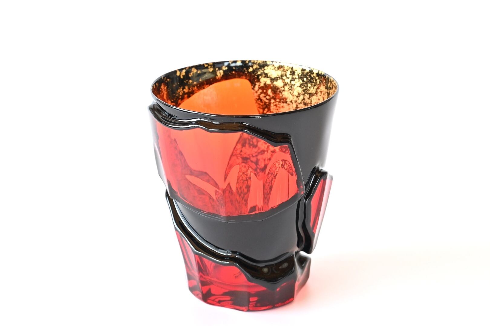 ガラスに漆を塗ったものではなく、漆そのものを25回塗り重ねて形づくった、芯を持たないタンブラーです。