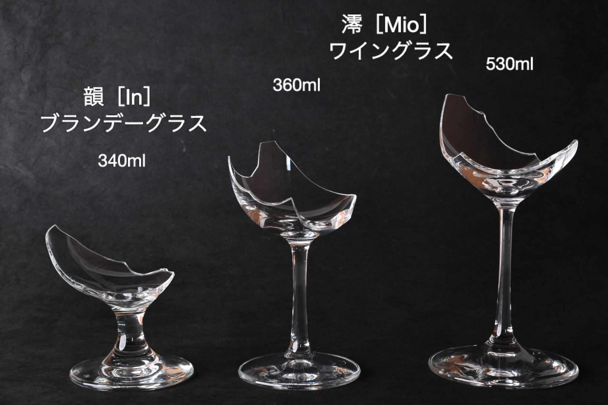 ガラスの割れ方、破片の形に同じものはないため、それぞれが唯一無二のワイングラスになります。